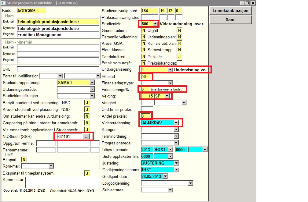 Opprette videreutdanningsemne